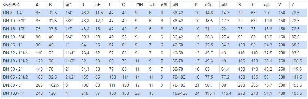 兩端:暗螺紋符合UNI/ISO 7/1 Rp;平焊和對焊。