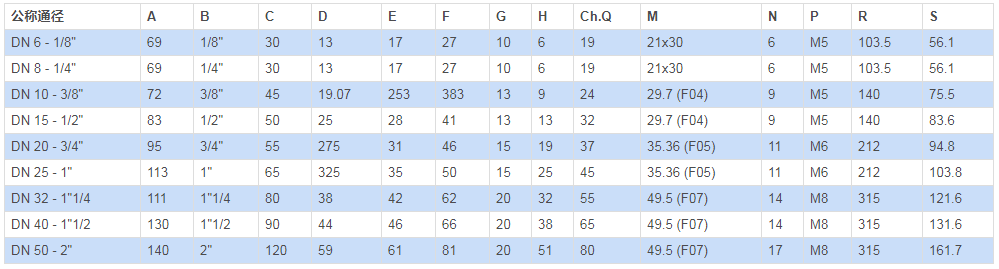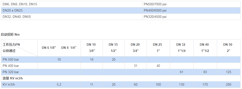 工作壓力:100bar/1500 psi DN6, DN8, DN10, DN15
