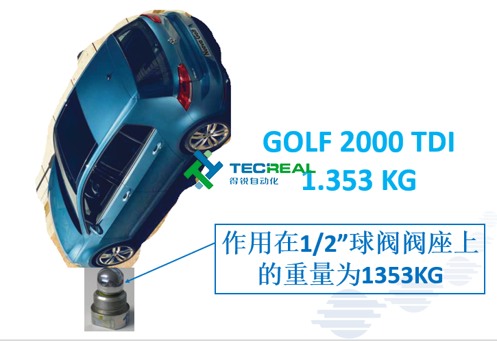 OMAL高壓球閥的閥座可承受1353kg的重量,相當(dāng)于上面可放置一輛GOLF 2000 TDI 汽車(chē)。