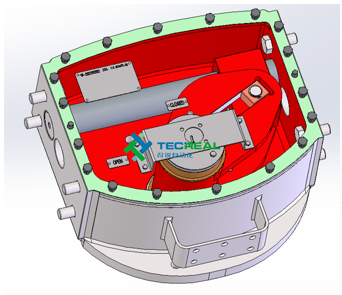 6.缸體內(nèi)表面及撥叉(紅色部分)具有防腐蝕作用。中央機(jī)構(gòu)的防護(hù)等級(jí)為IP67,中央機(jī)構(gòu)的上蓋允許在執(zhí)行器不從閥門處拆卸的情況下打開,進(jìn)行檢查及維護(hù)。