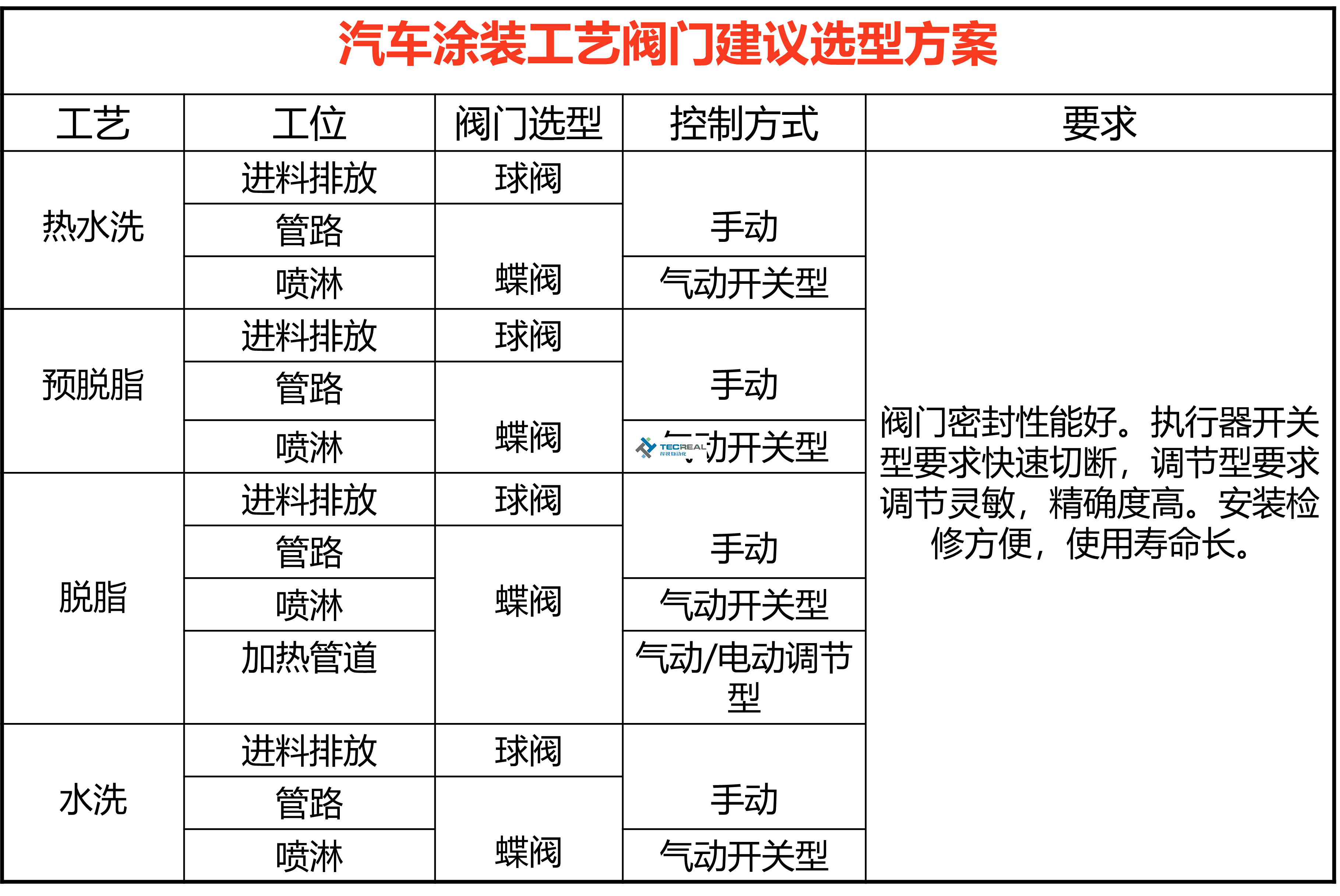 汽車涂裝工藝中閥門的執(zhí)行器的選型建議