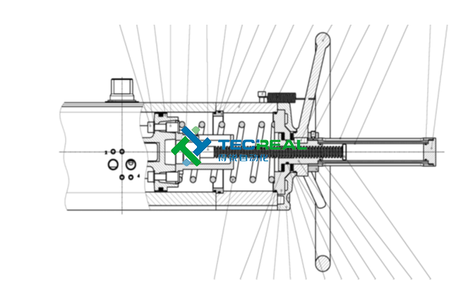 OMAL集成手輪型氣動執(zhí)行器巧妙的將緊急操作手輪機構集成于執(zhí)行器上,節(jié)省安裝空間,通過螺桿的移動直接作用于執(zhí)行器活塞,實現緊急狀況下手動控制效果。