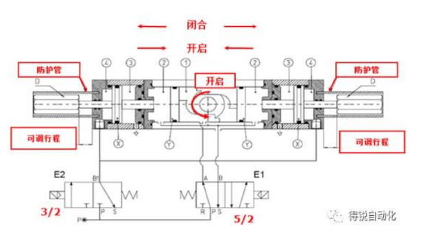 E1,二位五通電磁閥,控制執(zhí)行器;
