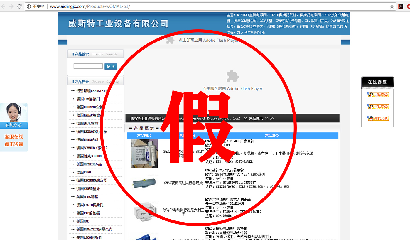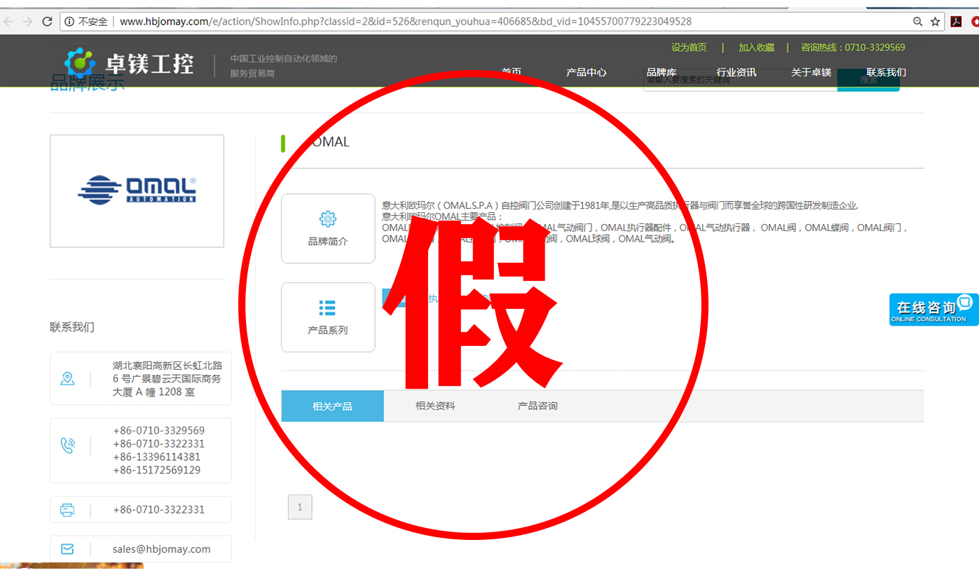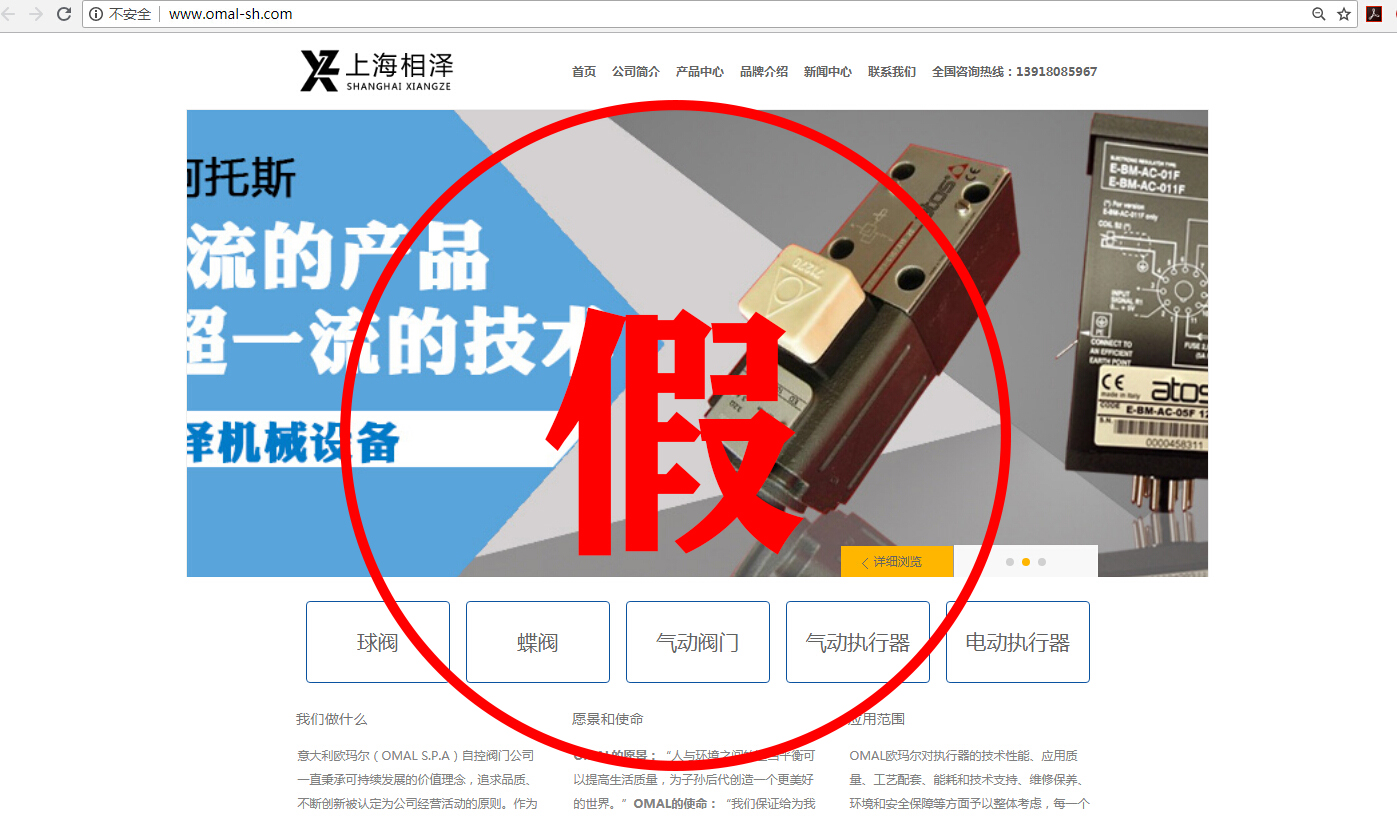 比如我們意大利OMAL的官網(wǎng)域名是www.omal.it,而有一家名叫上海相澤的公司,域名就是www.omal-sh.com。這讓我們意大利OMAL很是困惑,因為OMAL自控閥門在中國國內(nèi),并沒有這么一家叫上海相澤的經(jīng)銷商,同樣的還有一家叫上海樊信的公司,域名是www.omal-valve.com,網(wǎng)站首頁就是我們意大利OMAL的企業(yè)logo,這難道不是赤裸裸的假冒?還有諸如名為威斯特工業(yè)設(shè)備有限公司、湖北卓鎂工控設(shè)備有限公司等公司,把OMAL產(chǎn)品廣告在百度上打的不亦樂乎。