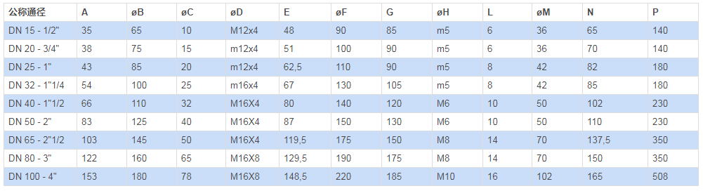 法蘭連接要求:符合EN 1092-1 PN40 至 DN50; PN16 DN65,50,100 EN 12516標準。