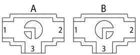 活塞球為“T”型,流體介質僅可從3號門進入。