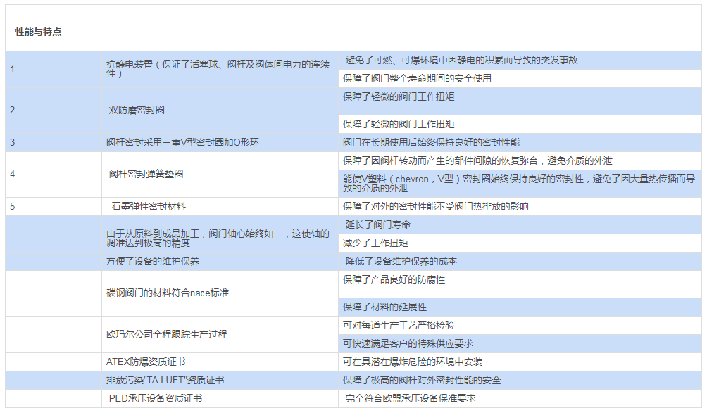 閥桿密封:V型系列,采用TFM1600聚四氟乙烯材料