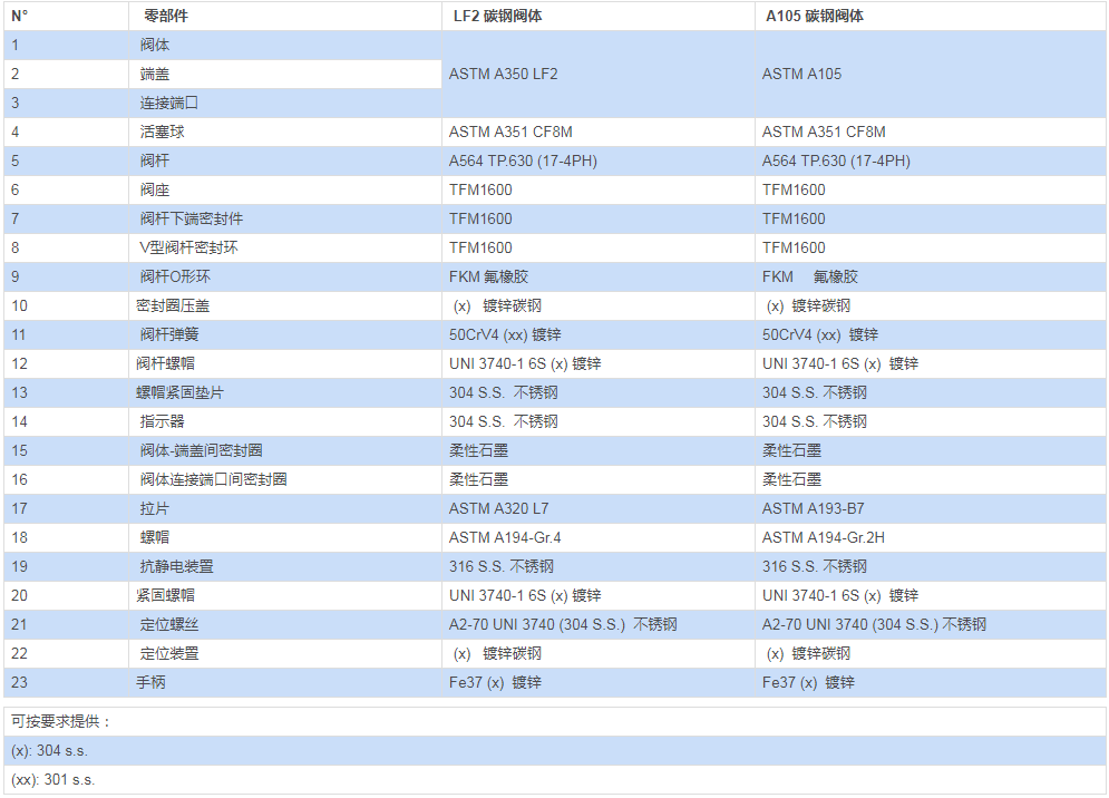 對于閥體、活塞球、閥桿需采用不同的特殊材料,請與我們的銷售部門聯(lián)系