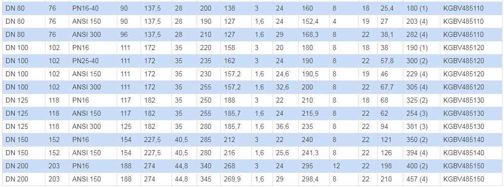 (1)?EN558 TAB. 2 COL. 14 / DIN 3202-1 F4?(2)?EN558 TAB. 2 COL. 15 / DIN 3202-1 F5?(3)?ANSI B16.10?(4)?B16.10 / API6D