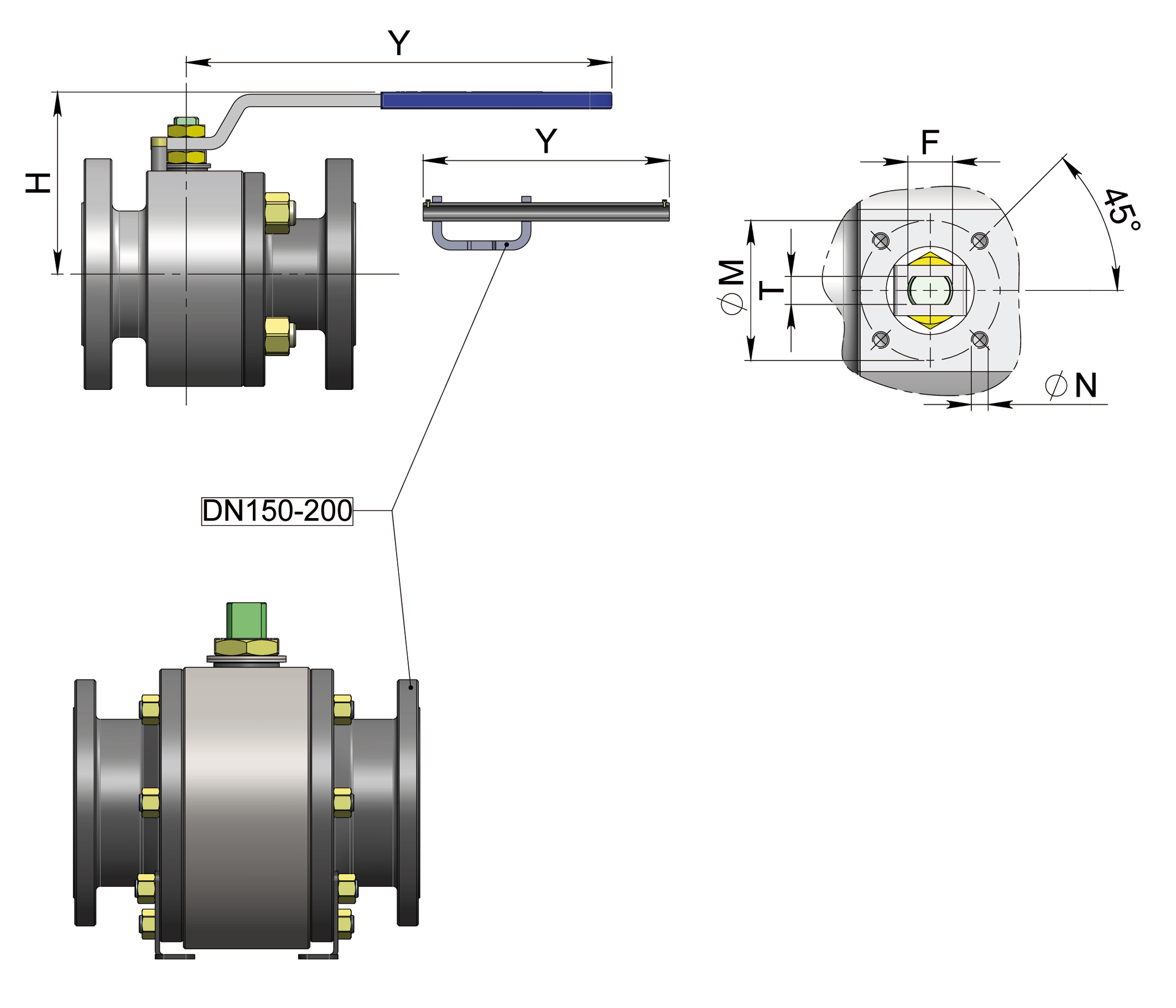 與執(zhí)行器連接孔符合ISO5211標(biāo)準(zhǔn)