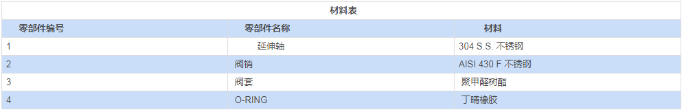 手柄、螺帽及閥桿彈簧采用不銹鋼