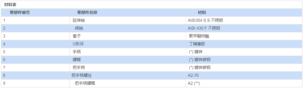 (*):按要求可提供 304不銹鋼 |