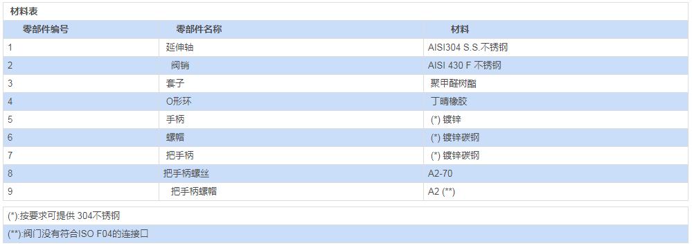 對(duì)于閥體、活塞球、閥桿需采用特殊的不同材料,請(qǐng)與我們的銷售部門聯(lián)系