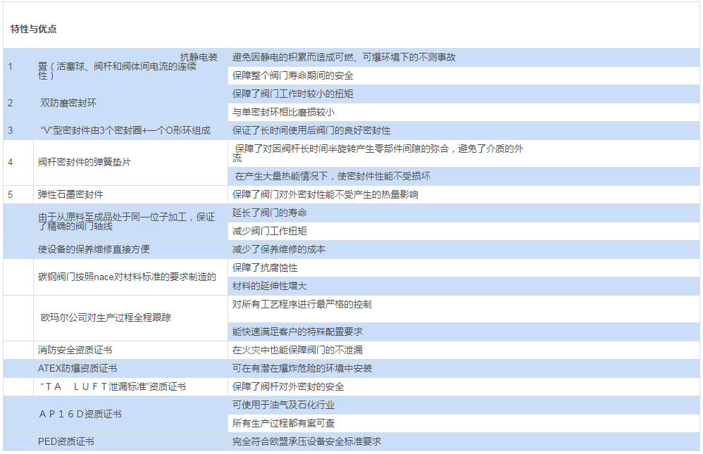 閥桿密封:V型系列,采用TFM1600聚四氟乙烯材料