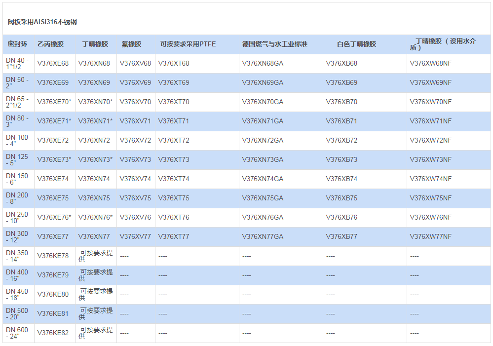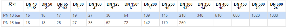 | DN 300 | KGFE0077 | KGFN0077 | KGFV0077 | KGFA0077 | KGFC0077 | KGFG0077 |