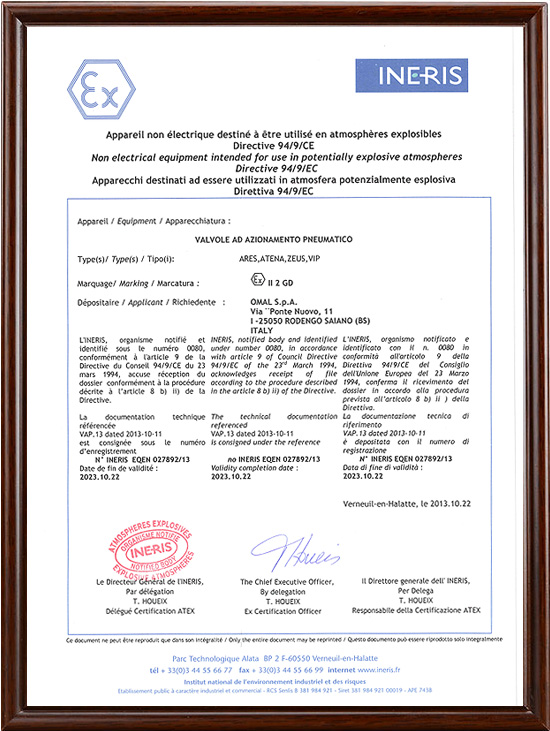 OMAL Pneumatic valves VIP-ANGLE SEAT VAP